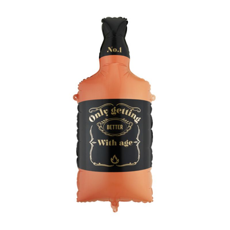 Balon whisky będzie wspaniałym uzupełnieniem dekoracji na przyjęcie urodzinowe lub imprezę tematyczną. Elegancki złoty napis na balonie “Only getting better with age”. Można napełnić go powietrzem lub helem. Rozmiar po napompowaniu ok. 34 x 86 cm. Zestaw zawiera słomkę.