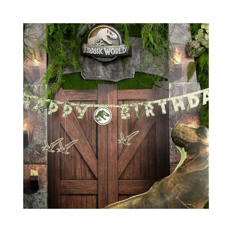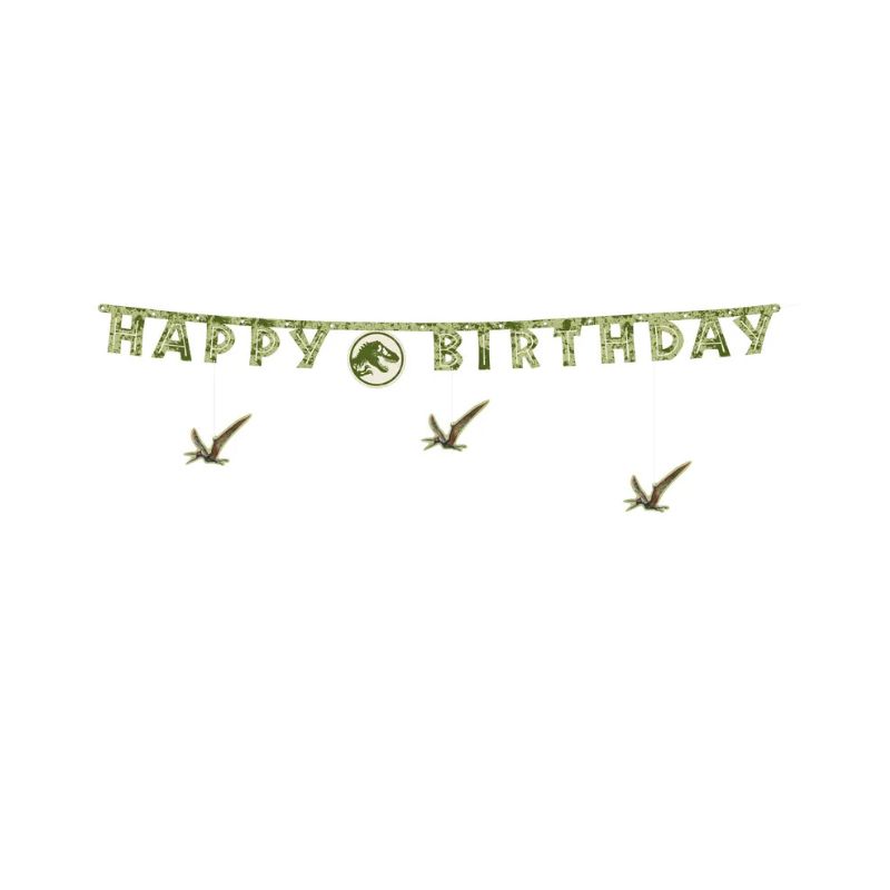 Baner Jurassic World to urocza dekoracja wykonana z papieru. Produkt będzie wspaniałym uzupełnieniem aranżacji na prehistoryczne przyjęcie urodzinowe. Zielony baner z logiem Jurassic World i latającymi pterodaktylami, zadba o wyjątkowy nastrój na sali zabaw. Wymiary to 165 x 45 cm.