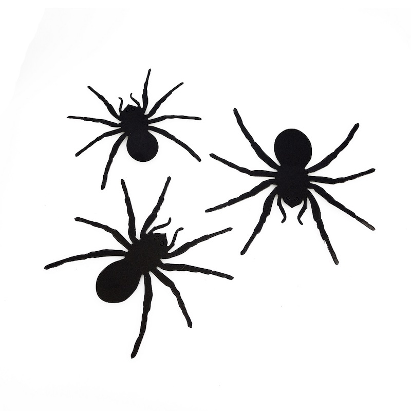 Dekoracja samoprzylepna pająki w kolorze czarnym. Zestaw zawiera 12 pająków o wymiarze 10,5 x cm. Idealne na dekorację Halloweenową lub inną tematyczną imprezę.