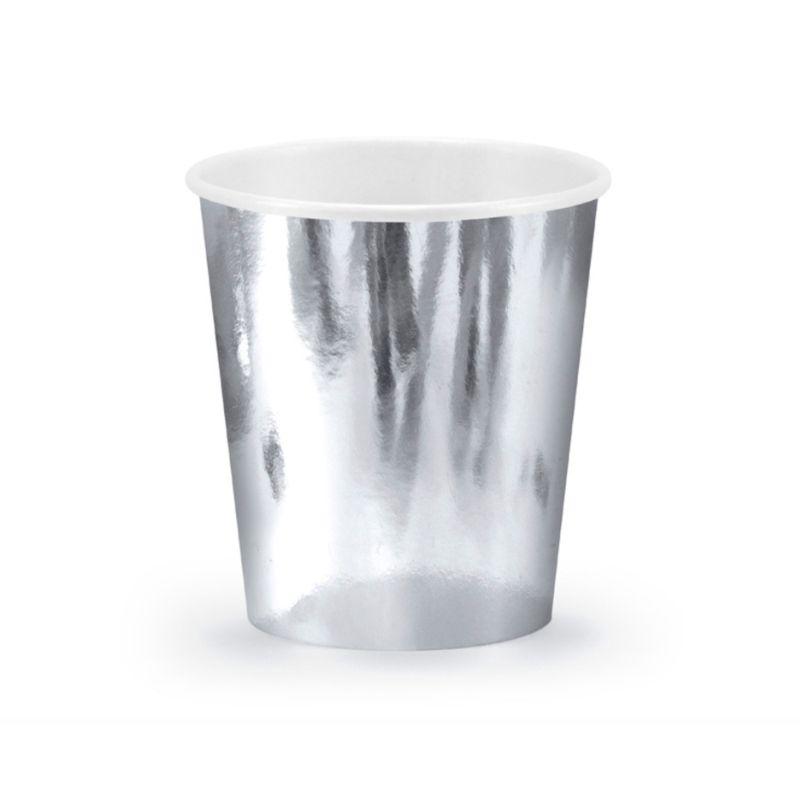 Kubeczki papierowe srebrne są wspaniałym dodatkiem niezbędnym na każdym przyjęciu. Pięknie prezentują się jako dekoracja stołu, pozwalają zaoszczędzić czas przy sprzątaniu, nie stłuką ich małe rączki. Opakowanie: 6 szt., 180 ml.