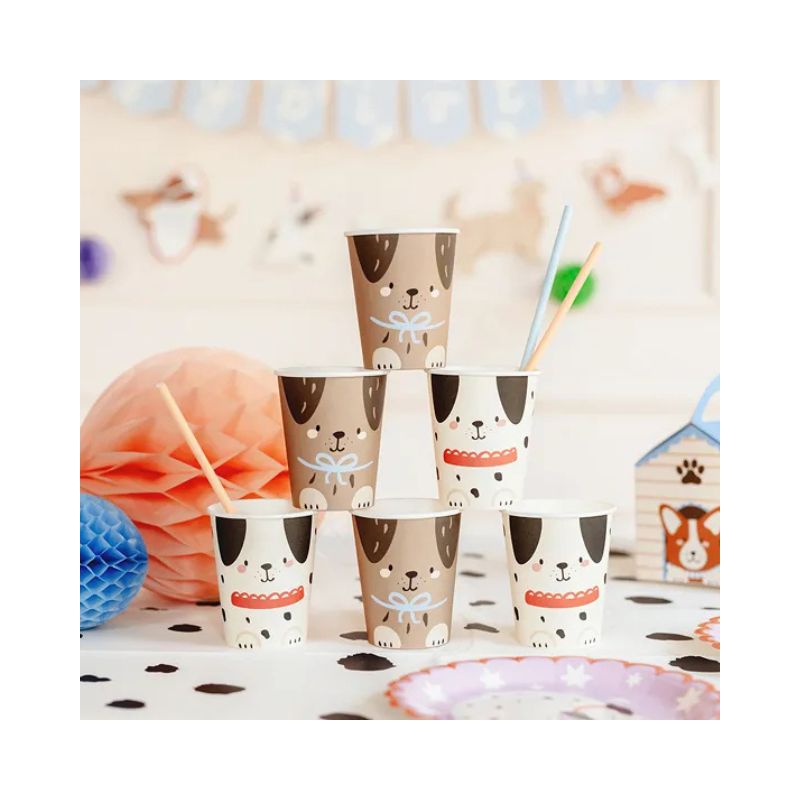 Kubeczki Pieski to urocza dekoracja wykonana z papieru. Produkt będzie wspaniałym uzupełnieniem aranżacji na pieskowe przyjęcie urodzinowe. Kubeczki ozdobione wizerunkami słodkich piesków zadbają o wyjątkowy nastrój przy wspólnym stole. Opakowanie zwiera 6 szt. pudełeczek o pojemności 220 ml.